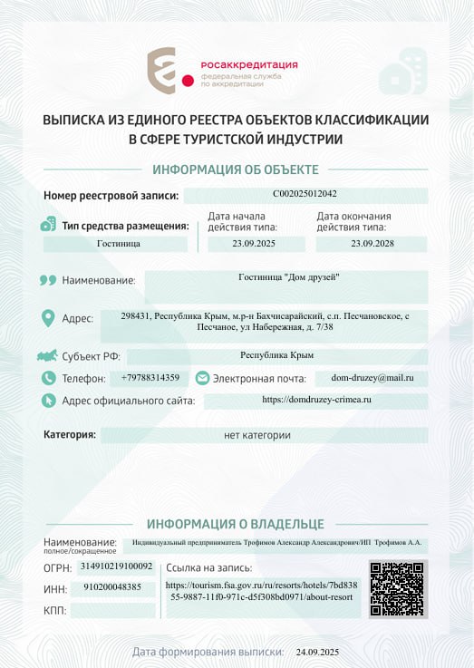 «Дом друзей» в поселке Песчаное прошел процедуру самооценки и сертификации. По итогам проверки объекту был официально присвоен статус гостиницы.